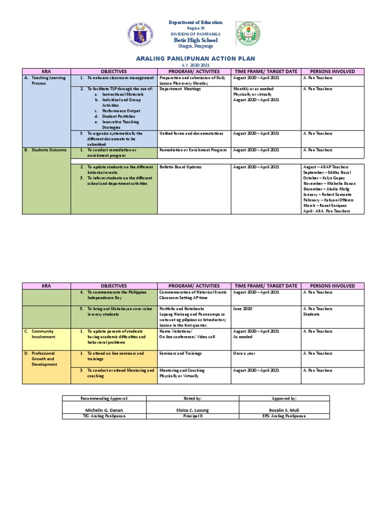 Araling Panlipunan Action Plann 2020 2021 Pdf Mentorship Classroom Management