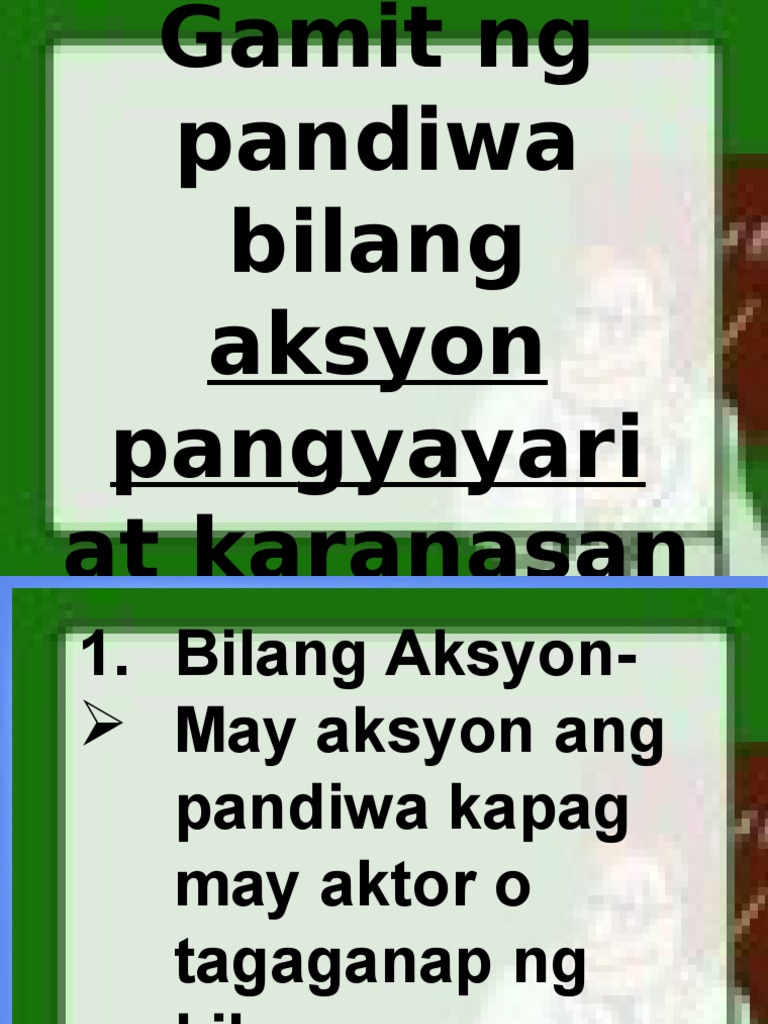 Mabubuo ang mga pandiwang ito sa tulong ng mga panlaping. Terms in this set 13 Aksyon. MGA HALIMBAWA NG PANDIWANG AKSYON KARANASAN AT PANGYAYARI.